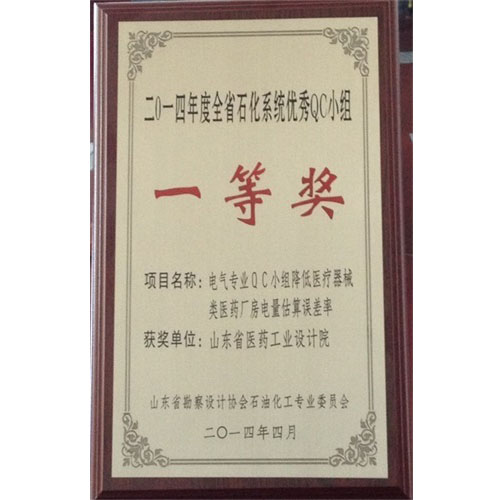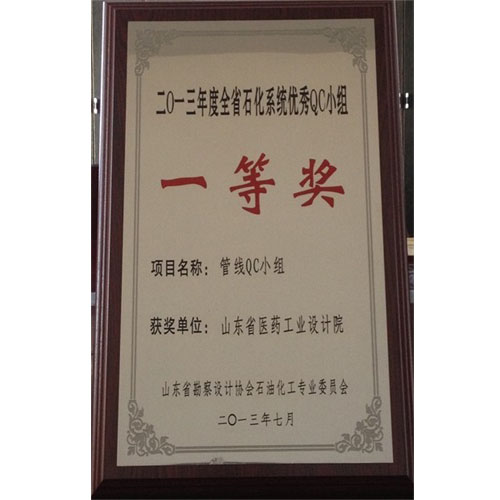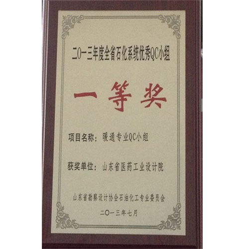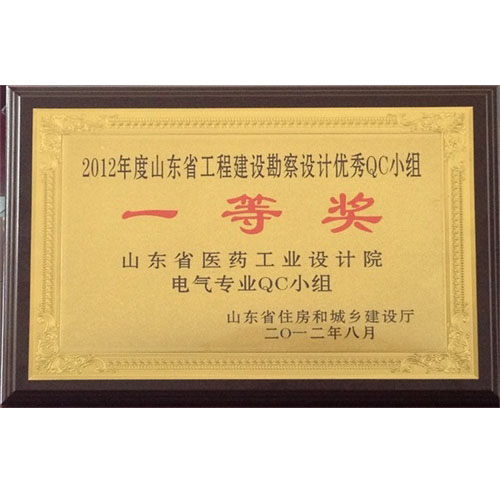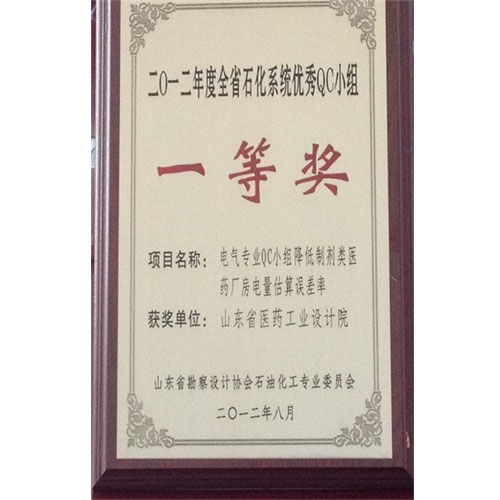 2012年度山東省工程建設(shè)勘察設(shè)計(jì)優(yōu)秀QC小組一等獎(jiǎng)