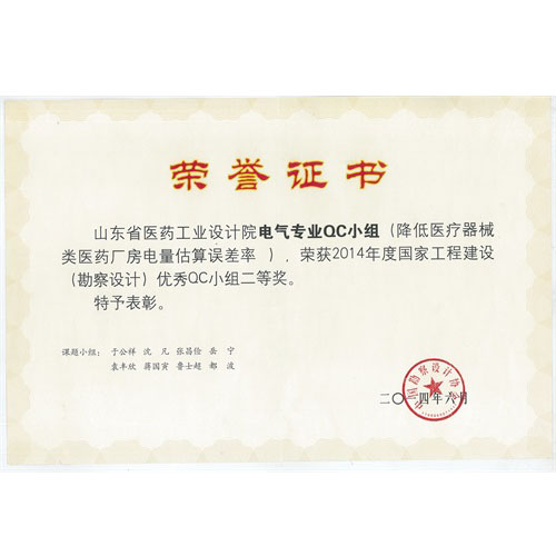 2014年度國(guó)家工程建設(shè)(勘察設(shè)計(jì))優(yōu)秀QC小組二等獎(jiǎng)