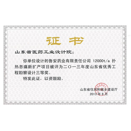 2013年度山東省優(yōu)秀工程勘察設(shè)計(jì)三等獎(jiǎng)