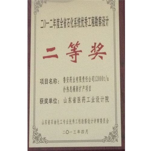 2012年度全省石化系統(tǒng)優(yōu)秀工程勘察設(shè)計二等獎