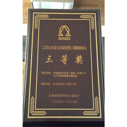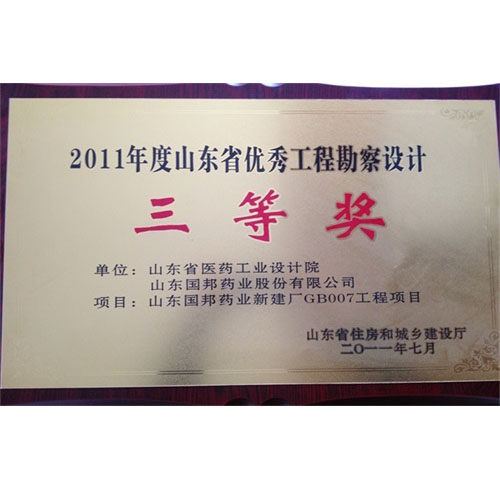 2011年度山東省優(yōu)秀工程勘察設(shè)計三等獎