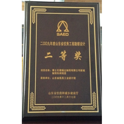 2009年度山東省優(yōu)秀工程勘察設(shè)計二等獎