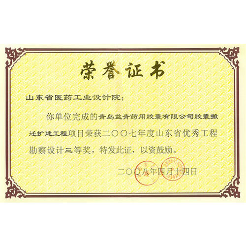 2007年度山東省優(yōu)秀工程勘察設(shè)計三等獎