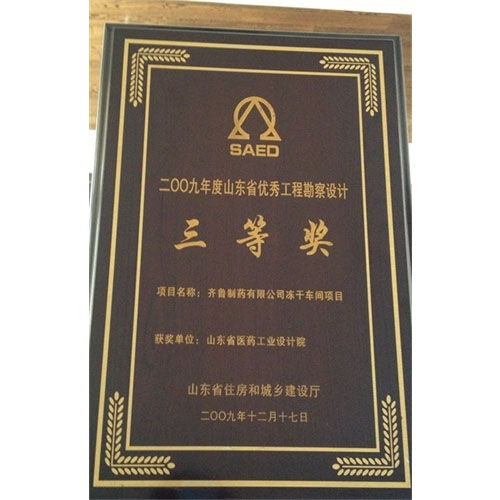 2009年度山東省優(yōu)秀工程勘察設(shè)計三等獎