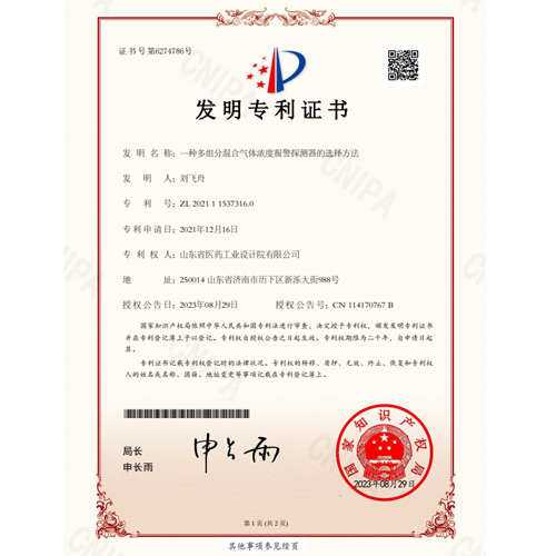 發(fā)明名稱:一種多組分混合氣體濃度報警探測器的選擇方法