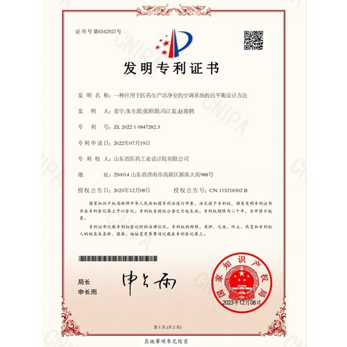 發(fā)明名稱:一種應用于醫(yī)藥生產(chǎn)潔凈室的空調(diào)系統(tǒng)的自平衡設計方法