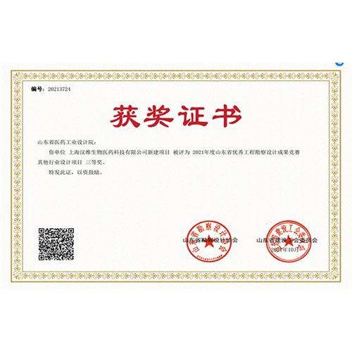 2021年度山東省優(yōu)秀工程勘察設(shè)計成果競賽其他行業(yè)設(shè)計項目三等獎