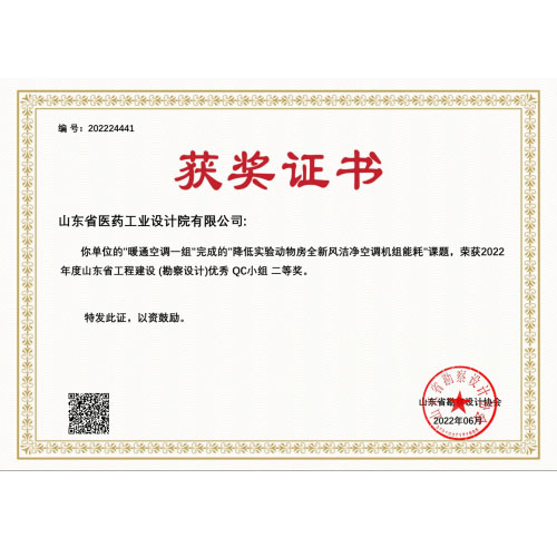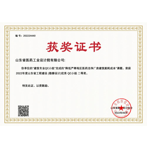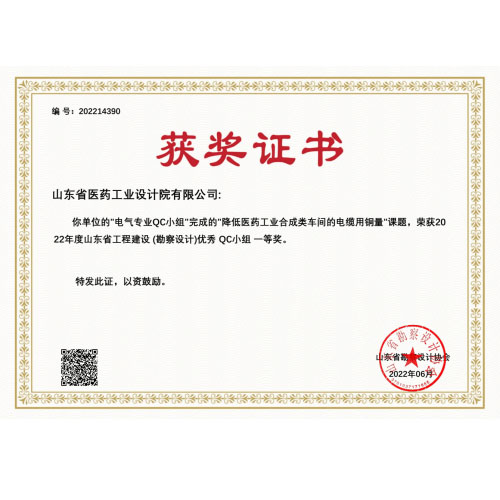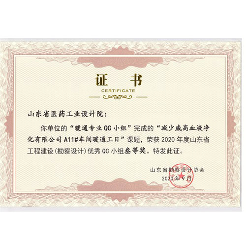 2020年度山東省工程建設(shè)(勘察設(shè)計)優(yōu)秀QC小組叁等獎