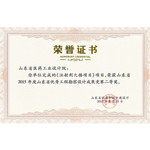 山東省2015年度山東省優(yōu)秀工程勘察設(shè)計(jì)成果競賽二等獎(jiǎng)