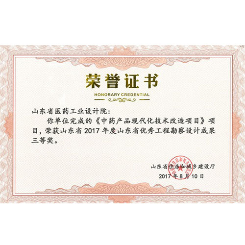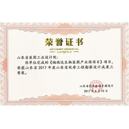 山東省2017年度山東省優(yōu)秀工程勘察設(shè)計(jì)成果三等獎(jiǎng)