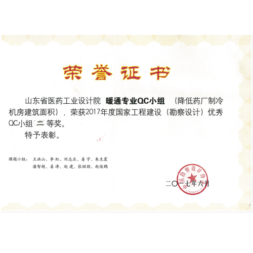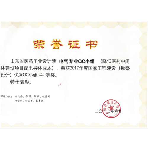 2017年度國家工程建設(shè)(勘察設(shè)計(jì))優(yōu)秀QC小組二等獎(jiǎng)