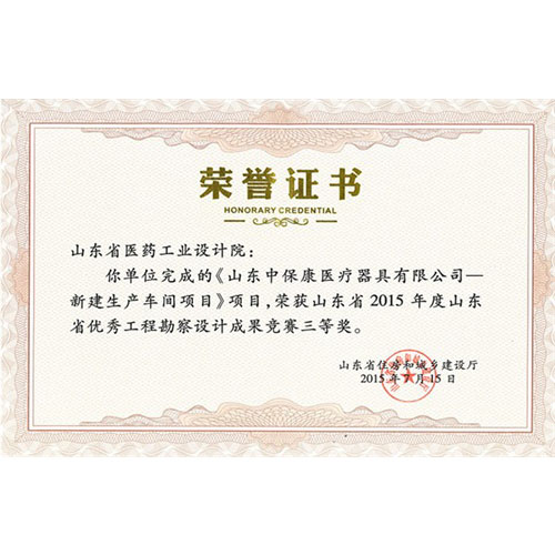 山東省2015年度山東省優(yōu)秀工程勘察設(shè)計(jì)成果競賽三等獎(jiǎng)