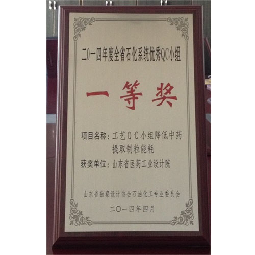 2014年度全省石化系統(tǒng)優(yōu)秀QC小組一等獎(jiǎng)