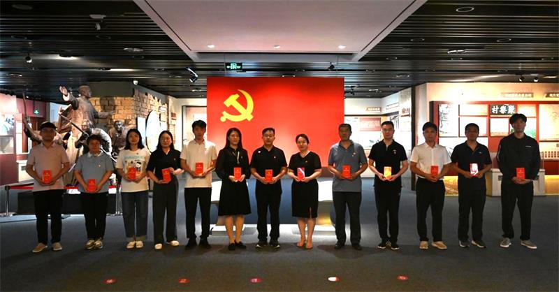 在淄博革命歷史紀(jì)念館,大家在講解員的帶領(lǐng)下依次參觀了“淄博概況”“崢嶸歲月”“改革開放”等七個(gè)展廳,了解淄博發(fā)展進(jìn)程,感悟濃厚歷史文化,體會(huì)革命歲月艱辛,傳承革命先烈遺志。參觀結(jié)束后,黨員干部面向黨旗重溫入黨誓詞,彰顯堅(jiān)守初心、勇?lián)姑膱?jiān)定信念。隨后,為13名集體過“政治生日”的黨員頒發(fā)了政治生日禮物——根據(jù)黨的二十大精神修訂的最新版《黨員手冊(cè)》。