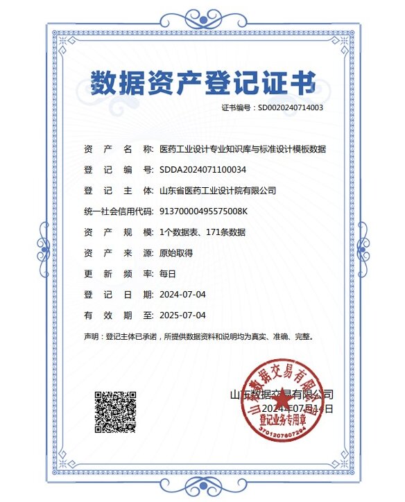 7月14日,省醫(yī)工院的“醫(yī)藥工業(yè)設(shè)計專業(yè)知識庫與標(biāo)準(zhǔn)設(shè)計模板數(shù)據(jù)”,榮獲山東數(shù)據(jù)交易有限公司頒發(fā)的《數(shù)據(jù)資產(chǎn)登記證書》。