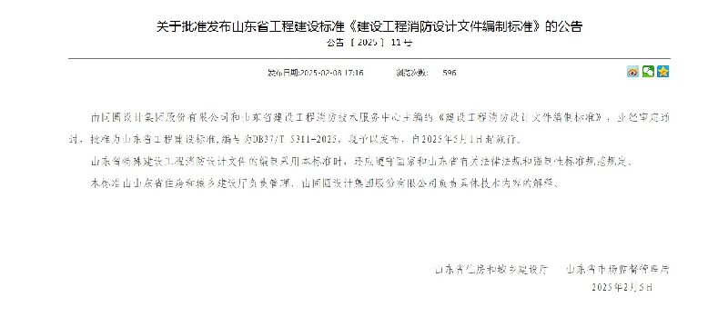 近日,由山東省醫(yī)工院參編的《建設工程消防設計文件編制標準》(DB37/T 5311-2025),獲山東省住房和城鄉(xiāng)建設廳、山東省市場監(jiān)督管理局共同批準發(fā)布,并將于2025年5月1日開始實施。