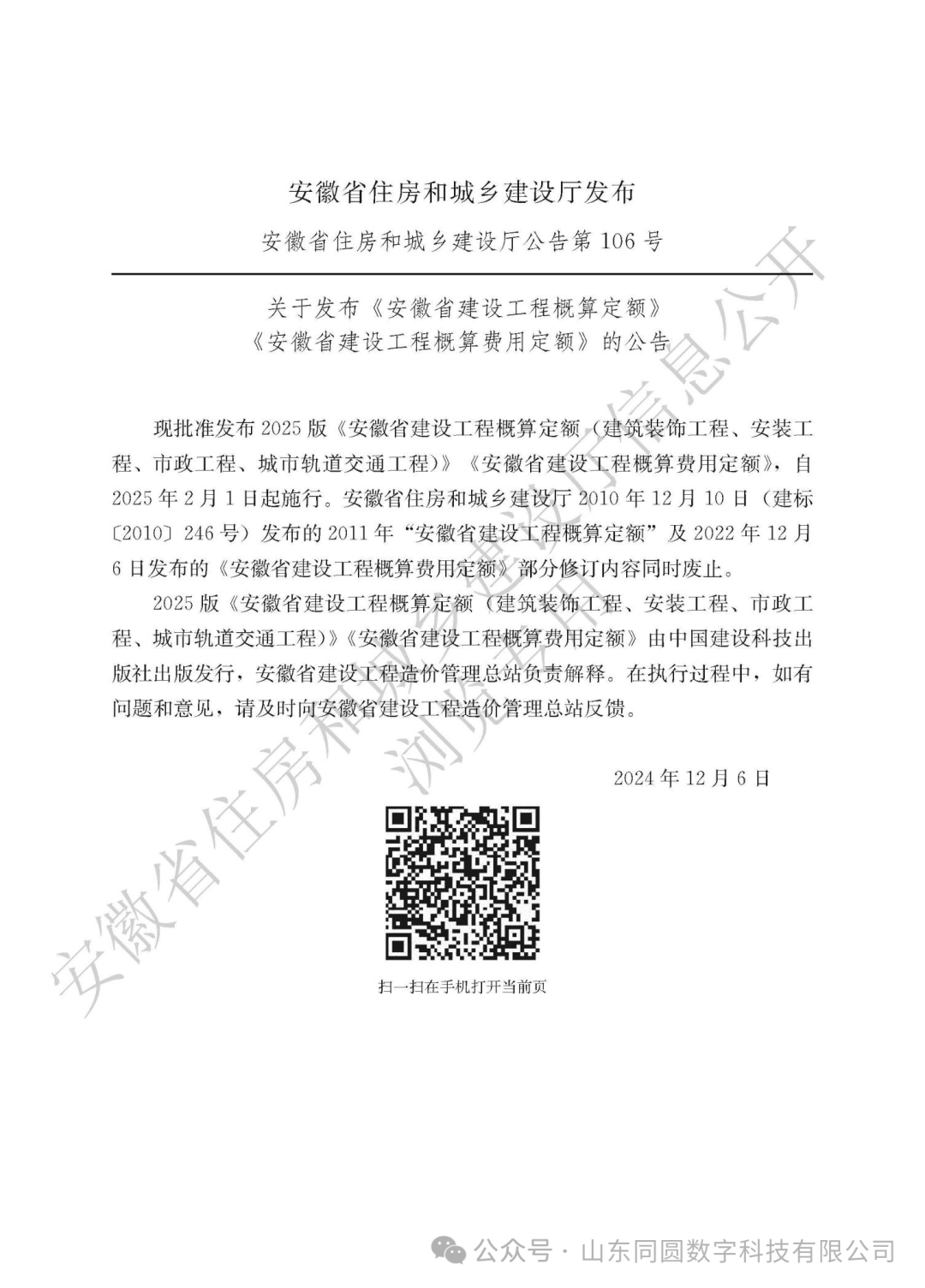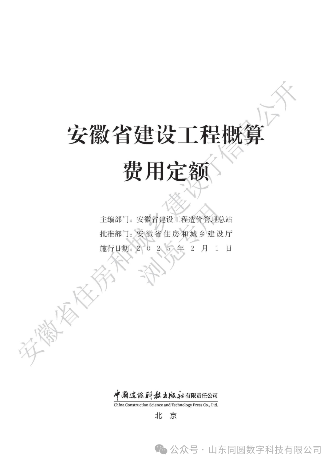 公布2025版《安徽省建設(shè)工程概算費用定額》