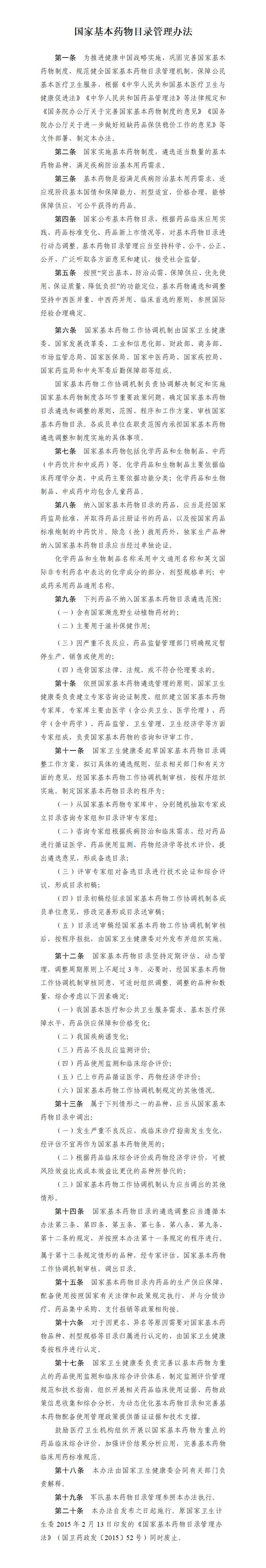 關于印發(fā)國家基本藥物目錄管理辦法的通知